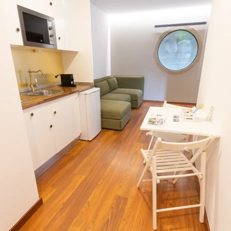 - 6 habitaciones independientes tipo apartamento, cada una con baño propio y cocina, pensadas para estancias más largas